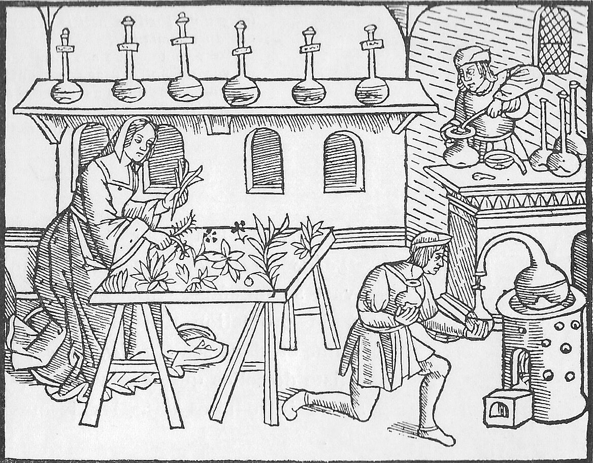 Après avoir rappelé le début des apothicaires en France au XIIe et XIVe siècles, Perrot évoque les évolutions de la Renaissance à la Révolution. « Du Xe au XVIIIe siècle, l’Alchimie rayonne sur tous les pays. C’est l’unique science ; elle remplace tous les systèmes et règne dans tous les laboratoires d’apothicaires et de médecins ». Mais Perrot ajoute « Pendant la Renaissance, jusqu’au XVIIIe siècle, à côté des excentricités des chercheurs de pierre philosophale, ou de l’élixir universel, l’étude des sciences naturelles reprend progressivement et, grâce à l’imprimerie, apparaissent successivement toute une série d’ouvrages que consultent avec fruit, de nos jours, tous ceux qu’intéresse la Matière médicale des ancêtres.