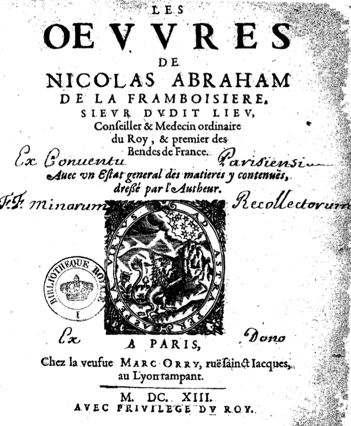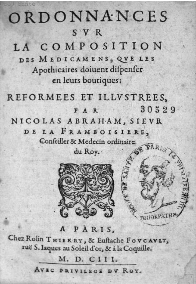 Il y a précisément un siècle, un article a été publié dans le Bulletin de la Société d’histoire de la Pharmacie sur ce sujet, signé par Prosper Van Melekebeke. Il parlait d’un ouvrage « devenu rare, écrit vers 1610 et publié en 1631 ». Une note de bas de page précisait que ce n’était pas la première édition et que cette dernière avait été publiée en 1613. Il se trouve que cet ouvrage (et cette édition de 1613) se trouve désormais numérisé à la BIU santé Paris-Cité. Il est donc intéressant de le faire connaître davantage pour encourager les curieux à y jeter un coup d’oeil.